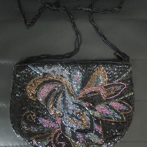 Tästä vähintään 50 vuotta vanha vintage helmilaukku. Ainutlaatuinen käsityönä tehty samanlaista et löydä mistään. Sisältä puhdas.Hintaa alennettu 40 eurosta