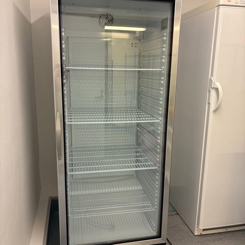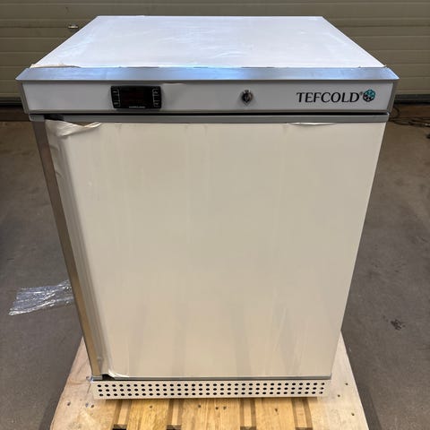 Tefcold pakastekaappi lasiovella. Kaapissa on useita säädettäviä ritilähyllyjä tuotteiden esillepanoon ja säilytykseen. Lasiovi helpottaa sisällön näkemistä avaamatta ovea. Yläosassa on virtakytkin, valokytkin ja digitaalinen näyttö lämpötilan seurantaan. Soveltuu pakastesäilytykseen ammatti- tai kotikäytössä.