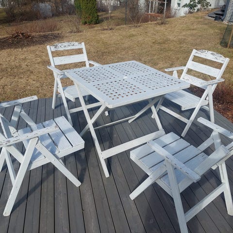 Pöyyä, tuolit. Rahit ja pehmusteet