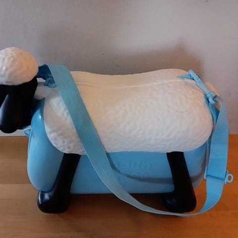 Lasten titinalle matkalaukku. Vetoketjut ehjät. Käytön jälkiä löytyy,muuten ihan toimiva peli. Sisäpuolelle kissa iskenyt kynsiään.