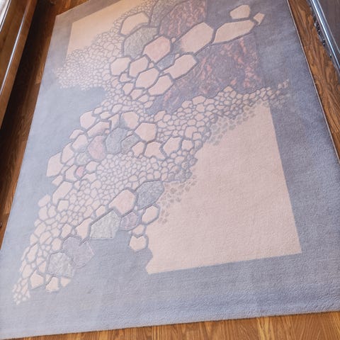 Lämpimän harmaa, paksu villasekoitematto. Iso ja näyttävä, kaunis kude. Muutamat tahrat näkyy kuvissa mitkä lähtee varmasti pois jos viitsii pyyhkiä kostealla. Tarjouksia kuunnellaan!