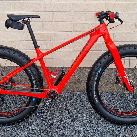 Hyvässä kunnossa oleva hiilikuiturunkoinen läskipyörä. Vuosimalli 2020. Sramin Eagle osat. Mukaan saa nastarenkaat(arvo n. 250€)