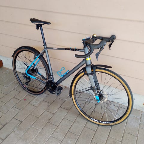 Hiilarihaarukka. German engineered runko. Shimanon 105 vaihtaja, levyjarrut.