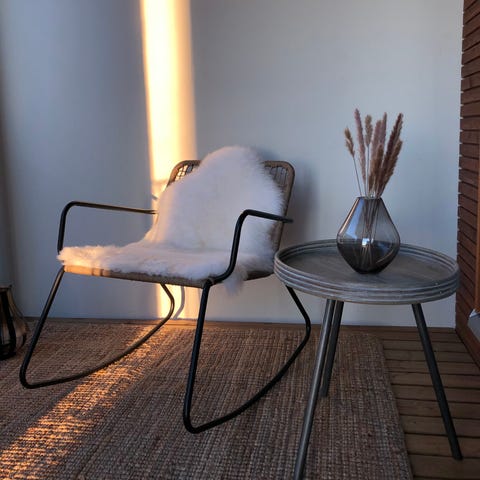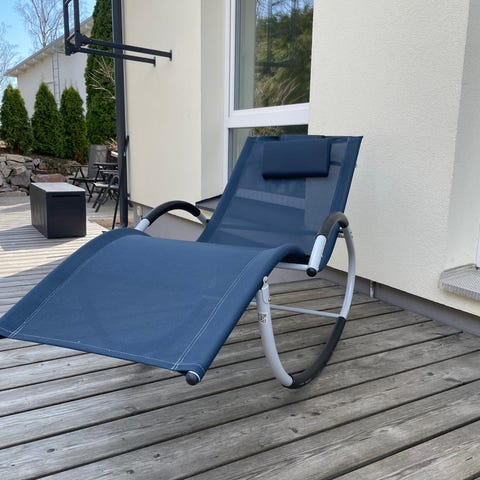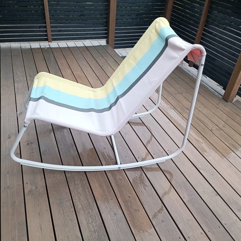 Toimiva keinutuoli, maali haalistunut punosten kohdalta.