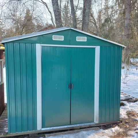 Puutarhavaja 4,1 m² harmaa - Tilava peltinen puutarhavarasto tuplaovilla