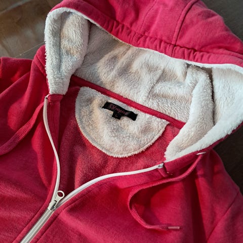 Ellos collegetakki naisille, koko 42/44. Materiaalina 100% puuvilla. Väri vaaleanpunainen. Mallissa on vetoketjukiinnitys edessä, huppu ja vetoketjulliset etutaskut. Sopii arkipukeutumiseen ja kerrospukeutumiseen. Ihana karkin värinen hupparitakki. Pituus 70cm, k-k 60cm. Zip-Up hoodie.
