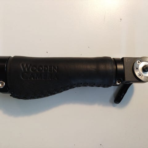 Pikkuinen Arri rosette yhteensopiva kuvauskahva vasemmalle puolelle, toimii oikeallakin jos ei välitä peukalon paikasta. Pienehkö käteni antamassa mittakaavaa, edes mulla ei mahdu neljä sormea tämän ympärille mutta kevyisiin järkkäri rigeihin oikein näppärä.