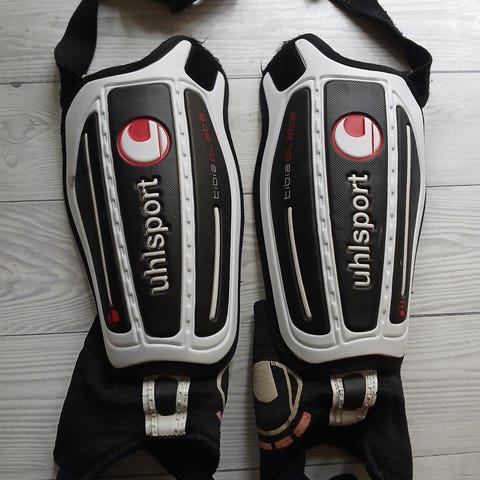 Nike säärisuojat jalkapallon pelaamiseen, koko M. Väri musta ja neonvihreä. Suojissa on kova ulkopinta ja pehmustettu sisäpuoli. Kiinnitys tapahtuu tarranauhoilla ja nilkkasuojilla, jotka antavat lisäsuojaa jalkaterän ja nilkan alueelle. Mukana verkkopussi säilytystä ja kuljetusta varten. Hyvässä kunnossa ja aikoinaan muutami kertoja käytetty ja sen jälkeen lojunut kaapissa.