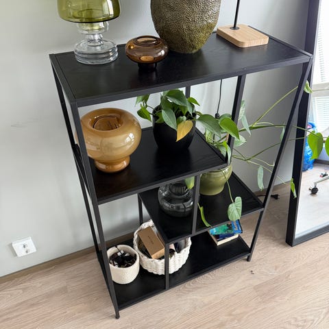 Hylly on kevyt siirtää. Yleisilmeeltään hyvässä kunnossa.