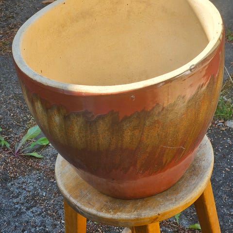 Tummanharmaa muoviruukku muuton tieltä. Haku pihlajaniemeltä