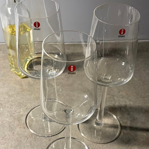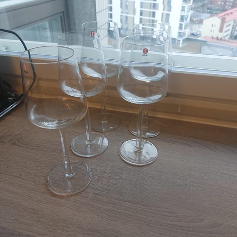 Iittala plus essence viinilasit kirkasta lasia. Korkea jalallinen malli, jossa on kaareva, kapeneva malja. Sopivat viinin tarjoiluun kattauksissa. Myydään kuvissa näkyvänä settinä.