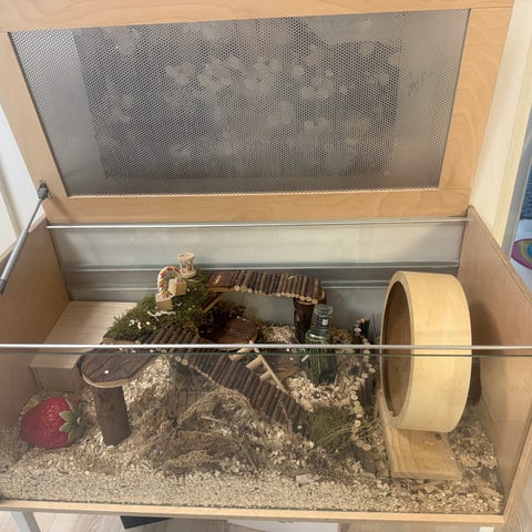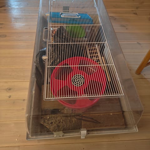 Häkki, ollut käytössä hamsterilla noin 6kk eli suht uusi. Pinna-välit pienet. Häkki sopii myös esim. marsulle.