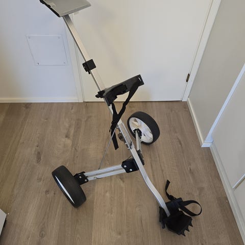 Myydään uuden kärryn tieltä, kunto hyvä ja kaikki toimii. Kulkeutuu omien menojen mukaan pk-seudulla tai nouto Paloheinästä golfkentän vierestä. Mukaan tulee sateenvarjolle teline, kärryn saa helposti kasaan.