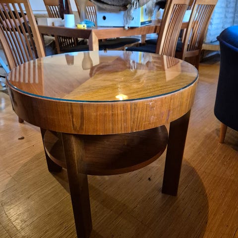 Myynnissä halkaisijaltaan 90cm oleva tosi kaunis 70-luvun puinen Vintage-kahvipöytä. (Ostin aikanaan Fargo Vintage liikkeestä, jossa he pöydän olivat ajoittaneet 70-luvulle).
