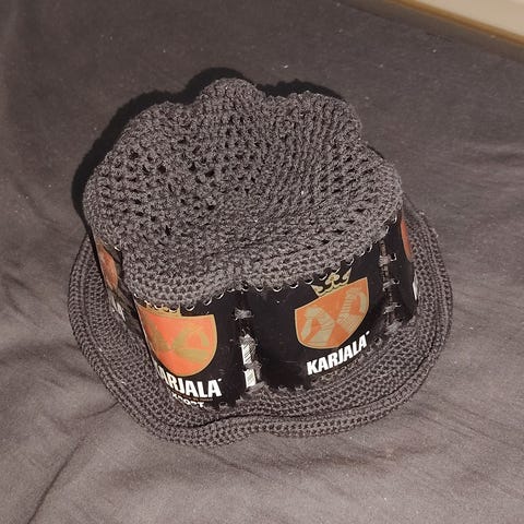 Myydään rennon tyylikäs tummansininen villalätsä. Ostettu Kööpenhaminasta hattuihin erikoistuneesta liikkeestä.