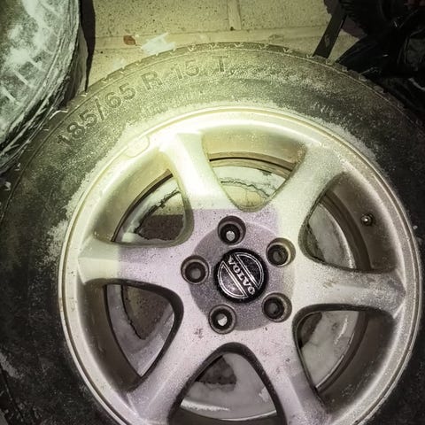 Myydään Volvon vanteet ja renkaat. Renkailla ajelee vielä yhden kesän.
