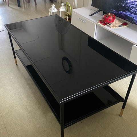 Myydään musta sohvapöytä. Pöydän kannessa naarmuja. Muuten hyvässä kunnossa.