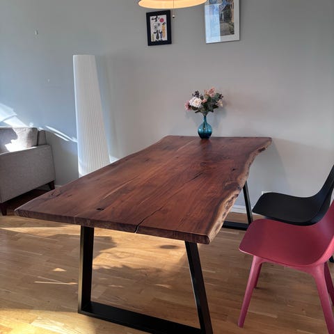 Pöytä painaa PALJON. Jalat eivät irtoa pöydästä. Sijaitsee viidennessä kerroksessa, mutta kantoapua tarjolla.