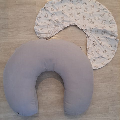 Vähällä käytöllä ollut ja siksi hyvässä kunnossa oleva Ergobaby-merkin imetystyyny. Tyyny tukee erinomaisesti sekä raskauden aikana että synnytyksen jälkeen.