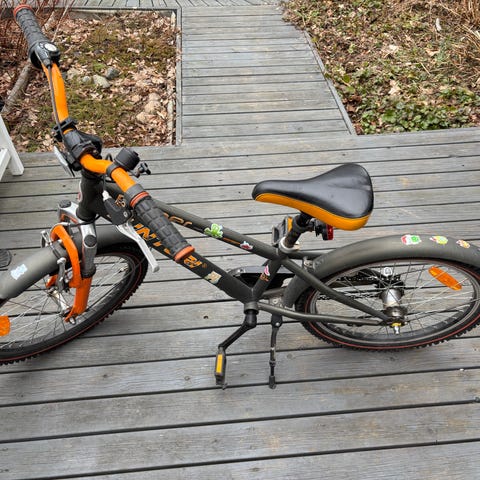 Tunturi lasten polkupyörä, jossa 20" renkaat. Rungon väri on valkoinen ja satula musta. Pyörässä on etukori, takatavarateline, lokasuojat ja ketjusuoja. Ohjaustangossa näkyy hiukan ruostetta ja kori on mutkalla (voi myös poistaa), mutta pyörä on vakaa kulkupeli ja muuten täysin toimiva. Lapselle noin 5-8 v.