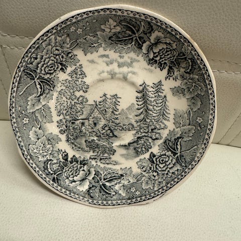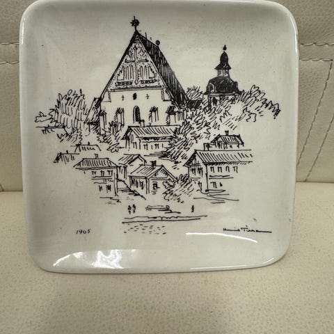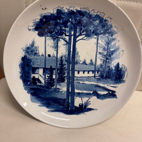 Arabia lautanen. Punainen. Maisema. 1. Halkaisija 250 mm. 1 kpl. 20 euroa. 2. Halkaisija 170 mm. 1 kpl. 13 euroa. 3. Halkaisija 130 mm. 4 kpl. 10 euroa kpl.