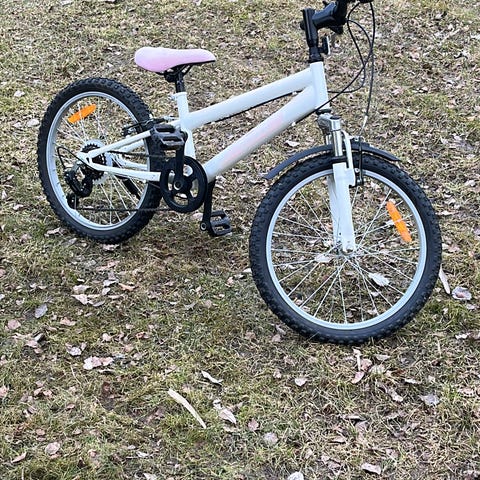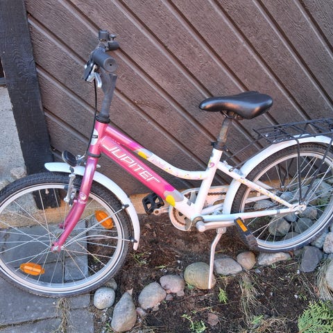 Lastenpyörä 20". Sininen runko, lokasuojat ja jalkatuki. Pyörässä on käsijarru ja heijastimet pinnoissa. Sopii arki- ja koulumatkoille lapselle, jolle 20 tuuman rengaskoko on sopiva.