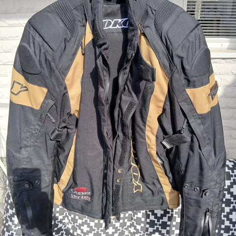 S/48 kokoa oleva Yokon Skloddi ajotakki! Takkia on käytetty yhden ajokauden ajan. Takissa on olkapäissä ja kyynärpäissä sisään ommellut suojat. Erinomaisessa kunnossa muuten, mutta pakoputki on polttanut sisävuoren verkkokankaaseen reijän ja vasemman käden kyynerpäässä on viilto päällimmäisessä kankaassa. Sisällä oleva veden- ja tuulenpitävä kuori on ehjä! Näistä vioista huolimatta edelleen erittäin köyttökelpoinen ajotakki kesän ajoihin.