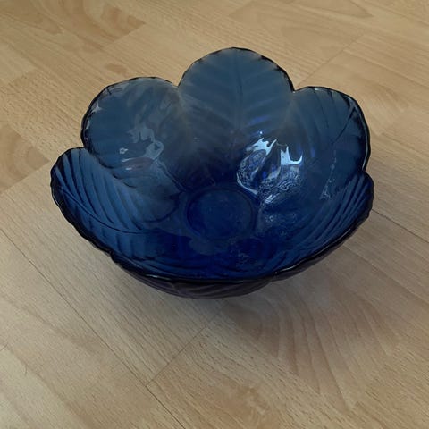 sininen salaattikippo. ehjä. korkeus n.10 cm, suuaukko n.17.5 cm. 1 kappale. ( 2kpl lisää jos tarvetta ). VAIN NOUTO. EI POSTITUSTA.