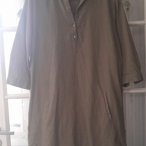 Syvän tummansininen pellavamekko kokomerkintä 40, mutta vastaa kokoa 42/L/XL.