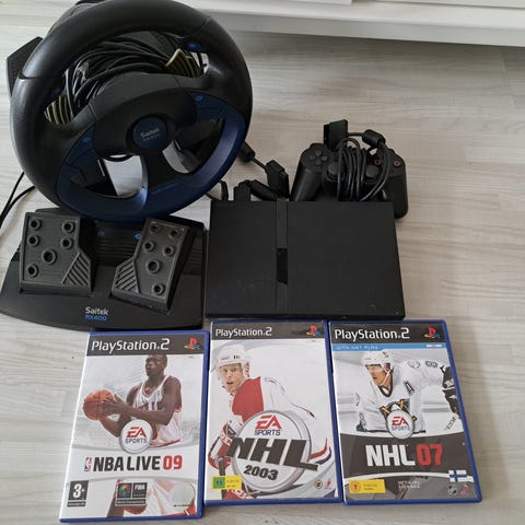 Konsoli, kaksi ohjainta, muistikortti, johdot sekä 7kpl pelejä. Osa peleistä hyvässä kunnossa ja osassa naarmuja, kaikki testattu ja toimii.