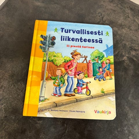 Ehjä lasten kirja nimeltä Ajoneuvot. Sivut kestävät vettä ja repimistä.