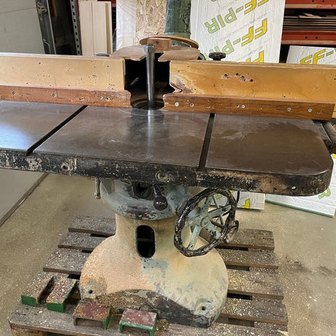 Yläjyrsin vuodelta 1955. Mukana taajuusmuuttaja. Johdot täytyy uusia olivat haperit pinnasta. Ollut vuosia varastoituna vähän kosteus jättänyt jälkiä.