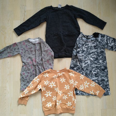 2 t-paitaa ja 4 collegepaitaa koossa 110/116.