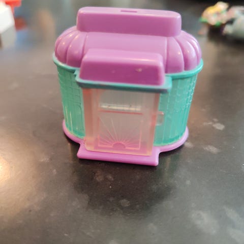Ihana miniatyyrimäinen Cutie Club sarjan Candy Store 80-luvulta. Tässä setissä on käsittääkseni kaikki pienen pienet alkuperäiset osat tallella minikokoista lyhtypylvästä lukuunottamatta: alusta, rakennus avattavalla ovella, irroitettava kaulahihna, nukke alustoineen ja pinkki harja. Siistikuntoinen setti. Tämä sarja muistuttaa Polly Pocket leluja, ja sen on valmistanut Lewis Galoob toys 1989. Osat ovat hyvin pieniä, alustan koko on noin 10 x 10cm.