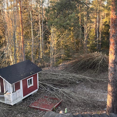 Koivupuu polttopuuksi. Puu on kaadettu ja osittain sahattu. Ks.kuvat.
