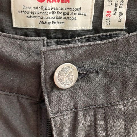 Fjällräven Abisko Shade Trousers, todella kevyet ja viileät retkeilyhousut. Housuissa on useita vetoketjuja, jotka mahdollistavat mahdollisimman suuren ilman kierron lämpimissä ilmanaloissa. Lahkeita saa myös helposti ylös (tätä varten sisällä nappi) ja saa housuista shortsimaiset. Hyvät taskut.