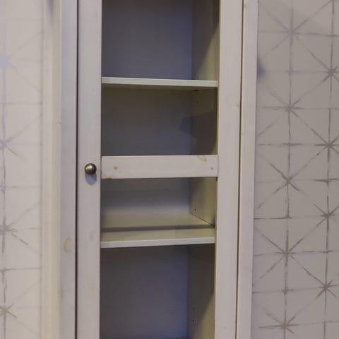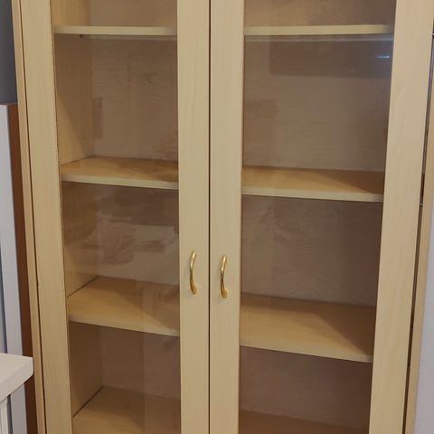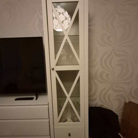 Hyvä kuntoinen vitriini. Menee kahteen osaan. Kaikki valkoiset osat on maalattu ja maalausjälki näkyy