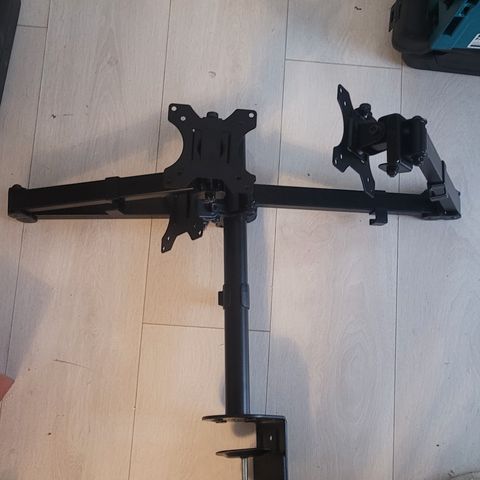 Säädettävä näytön varsi, jossa on pöytään kiinnitettävä puristin. Varsi on musta ja siinä on VESA-kiinnitys näytölle. Sopii yhden näytön kiinnittämiseen pöydän reunaan, mahdollistaen näytön korkeuden ja etäisyyden säätämisen työpisteessä.