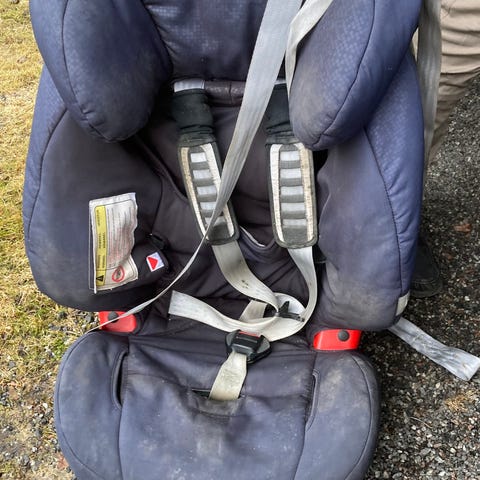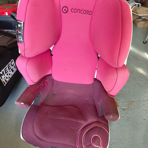 Kasvot menosuuntaan oleva turvaistuin, 9-18kg istuimen vöillä ja 36kg asti auton turvavyöllä. Meillä ollut kakkosautossa käytössä, nyt turha. Iästä ei varmuutta. Vain nouto.