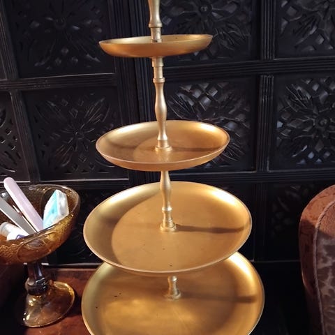 Ikean kultainen tarjoitin. Paikoitellen väri haalistunut, kuvasta näkyvissä.