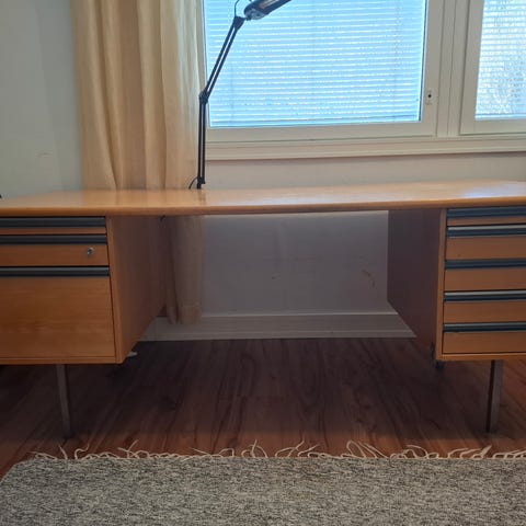 Iskun massiivinen (180*80cm) työpöytä. Käytetty kunto.