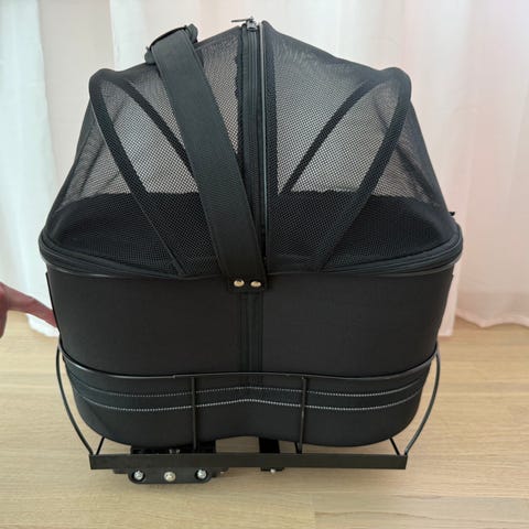 Käyttämätön kori pienen koiran kanssa pyöräilyyn.