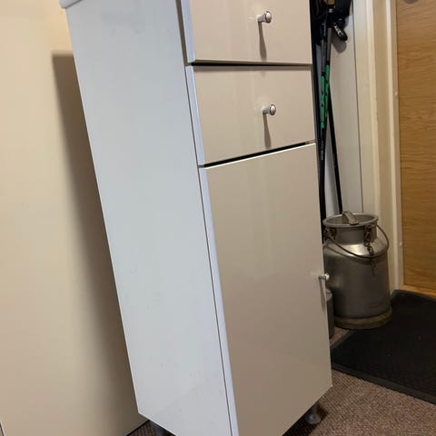 Siisti kuvan mukainen kaappi, jaloissa korkeussäätö. Kaapin yläreunan koukut irrotettavissa.
