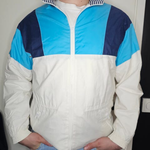 Hyvä vintage-kunto. Toisessa hihassa on muutama hyvin haalea tahra/jälki (katso kuvat). Nämä ovat käytössä lähes huomaamattomia ja saattavat lähteä pesussa tai tahranpoistoaineella.