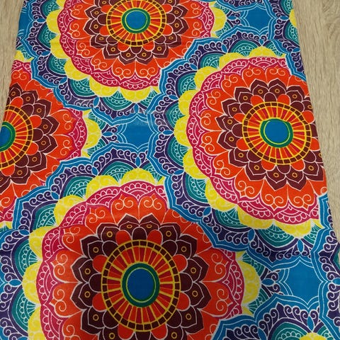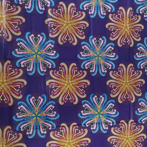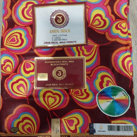 Hieno, värikäs vahapintainen kangas, länsi afrikasta. Kankaan leveys n117cm ja kangasta on 6 jaardia eli n.5,486m.
