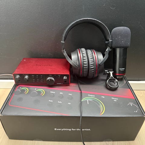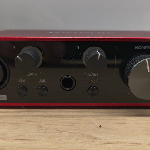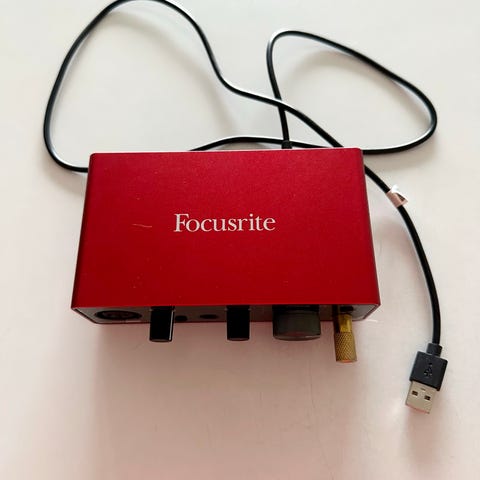 Focusrite Scarlett 2i2 USB-äänikortti 2nd gen. Laitteessa on kaksi yhdistelmäliitäntää mikrofonille tai linjatasoiselle/soitin tasoiselle signaalille etupaneelissa sekä gain-säätimet ja indikaatiovalot. Takapaneelissa on USB-liitäntä tietokoneeseen sekä linjalähdöt esimerkiksi kaiuttimille tai mikserille. Soveltuu äänen nauhoittamiseen ja toistamiseen tietokoneen kanssa, esimerkiksi kotistudio- ja podcast-käyttöön.