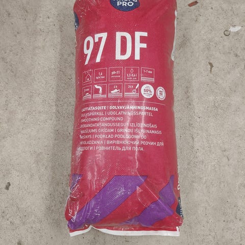 Tikkurila presto R, telattava kevyttasoite 12 kg. Omasta projektista jäi reilusti yli. Eli pakkaus 12kg, josta käytin noin 2.5kg. Eli jäljellä 9,5kg. Täyden pöntön hinta noin 47€.