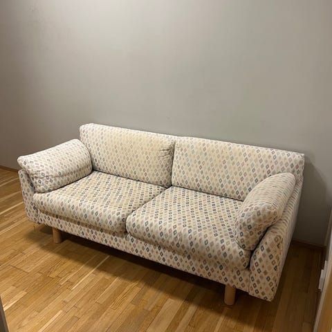 Annetaan kolmen istuttava sohva ja kaksi nojatuolia vaikka harrastetilaan, yhdessä tai erikseen. Kissatalous, ei kuitenkaan kynsitty pilalle, joten sopii myös ihan kodin käyttökalusteiksi. Nouto Pohjois-Turusta.