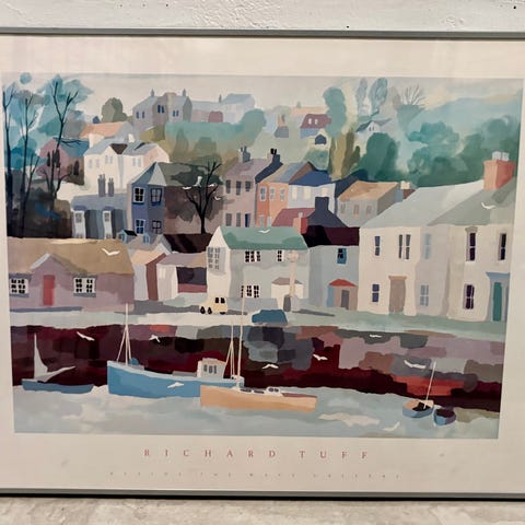 Pari viiniaiheisia julisteita mustareunaisissa kehyksissä.
