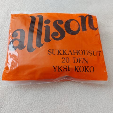 Pretty Polly Spectra -sukkahousut, jotka ovat aitoa 1980-luvun vintage-tuotantoa. Kyseessä on 15 denierin sileäneuloksiset sukkahousut, joiden väri on "Soft Peach". Koko 36-42